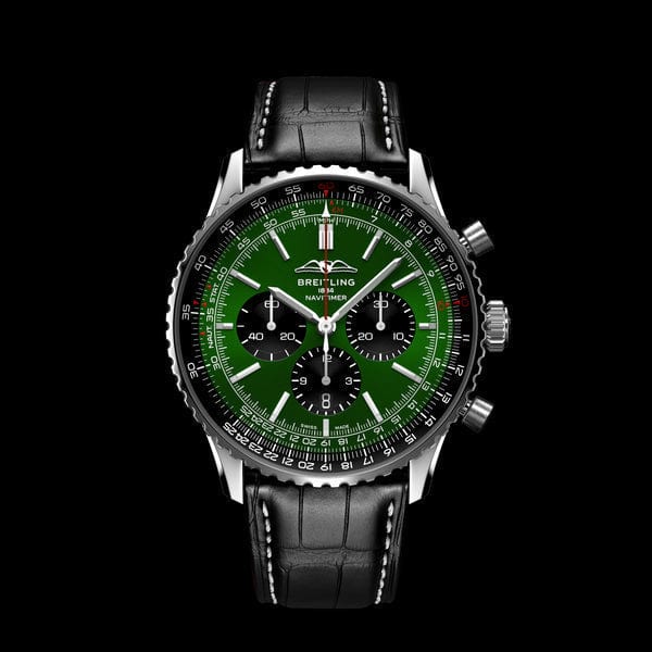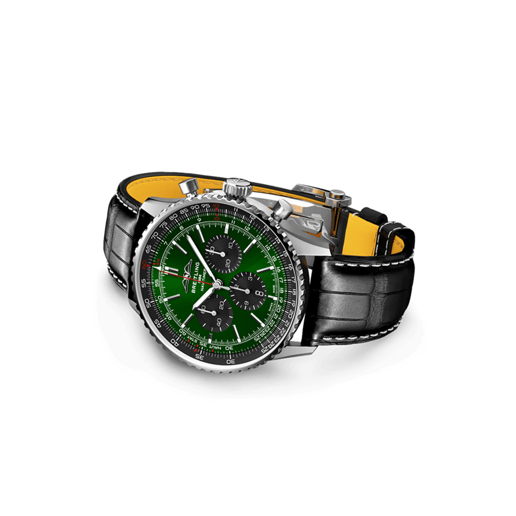 Breitling Navitimer B01 Chronograph 46 Green Dial Black Leather Strap Watch for Men - AB0137241L1P1