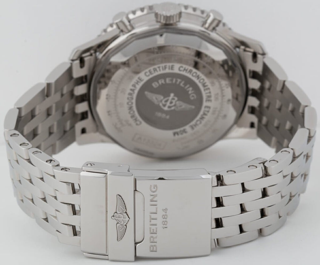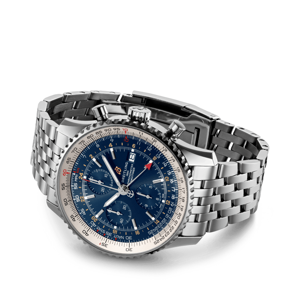 Breitling Navitimer Heritage 42 mm watch. Model reference: A1332412.C942.451A. Steel case. Aurora Blue dial. Automatic movement. Navitimer bracelet. Swiss made. Watch comes in original packaging, with set of documents and 2 years warranty.