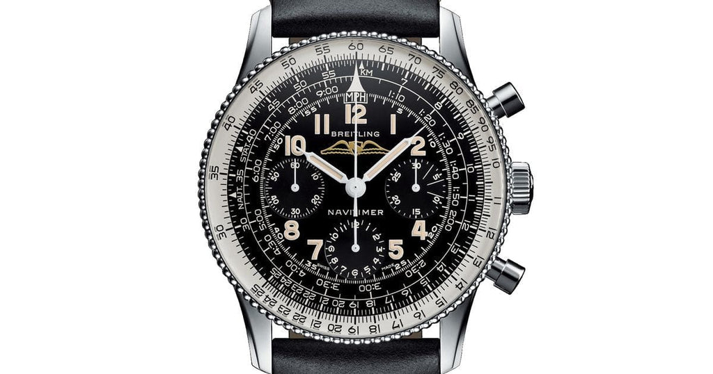 The Navitimer Ref. 806 1959 Re-Edition has been designed with painstaking attention to every detail to faithfully match the design of the original Navitimer in 1959. It has a stainless-steel case of precisely the same dimensions as its inspiration and an all-black dial with tone-on-tone small second, 30-minute and 12-hour chronograph counters. Recreating one of the signature elements of the original Navitimer Ref. 806 in 1959, the dial, protected by a highly-domed Plexiglas, is highlighted with a Breitling inscription in capital letters and an unsigned winged logo. In fact, the only concessions to modernity are the water resistance, which has been increased to 3 bar (30 meters), and a Super-LumiNova® coating for which a very special attention has been paid to the color to ensure that it aligns with the aging of the luminescent material on earlier watches. Its hand-finished application gives the dial an additional touch of vintage allure and all its character.