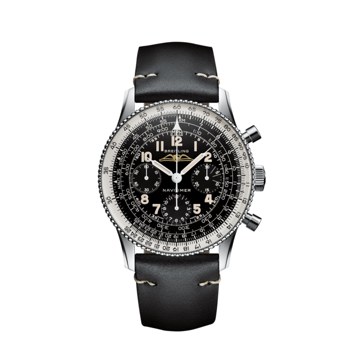 The Navitimer Ref. 806 1959 Re-Edition has been designed with painstaking attention to every detail to faithfully match the design of the original Navitimer in 1959. It has a stainless-steel case of precisely the same dimensions as its inspiration and an all-black dial with tone-on-tone small second, 30-minute and 12-hour chronograph counters. Recreating one of the signature elements of the original Navitimer Ref. 806 in 1959, the dial, protected by a highly-domed Plexiglas, is highlighted with a Breitling inscription in capital letters and an unsigned winged logo. In fact, the only concessions to modernity are the water resistance, which has been increased to 3 bar (30 meters), and a Super-LumiNova® coating for which a very special attention has been paid to the color to ensure that it aligns with the aging of the luminescent material on earlier watches. Its hand-finished application gives the dial an additional touch of vintage allure and all its character. The Navitimer Ref. 806 1959 Re-Edition is powered by the in-house Breitling Manufacture Caliber B09, a hand-wound COSC-certified caliber based on the renowned Breitling Caliber 01 and developed specifically for historical re-editions. The Navitimer Ref. 806 1959 Re-Edition is available on a black leather strap and as a limited-edition of 1959 pieces, all individually numbered and engraved on the caseback.