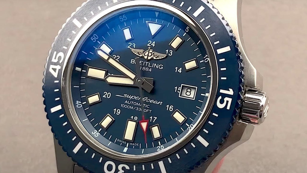 Breitling Superocean 44 Special Y1739316-C959-228S - Swiss Made, Mariner Blue Dial, Index Hour Markers, 60 Second & Minute Markers Around Outer Rim, Blue Ceramic Bezel with 60 Minute Scale, Date Feature, Date Displayed at the 3 O'clock Position, 40 Hour Power Reserve, Self-winding Automatic Chronometer Movement COSC Chronometer Certified, Breitling Caliber 17, Vibrations Per Hour: 28,800, Jewels: 25, Brushed Stainless Steel Case, Blue Ocean Racer II Rubber Strap, Cambered Scratch Resistant Sapphire Crystal Glareproofed on Both Sides, 1000 Meters / 3300 Feet Water-Resistant, 44mm = 1 3/4" Case, 7" Adjustable Strap, Case Weight: 116.67g, Case Thickness: 14.20mm, Inlet Size: 22mm, Unidirectional Rotating Bezel, Stainless Steel Solid Case Back, Luminescent Hands & Hour Markers, Screw Down Crown & Case Back, Stainless Steel Tang Buckle