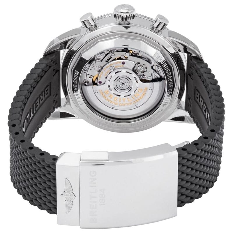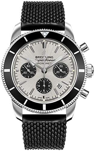 Available in a variety of materials including stainless steel and 18k red gold, the Superocean Heritage B01 Chronograph 44 features a range of black, blue, silver, or green dials. Offered either with a matching mesh bracelet, or a “mesh-styled” rubber strap fitting a folding buckle, this Superocean Heritage is powered by the in-house Breitling Manufacture Caliber 01, a COSC-certified chronometer.