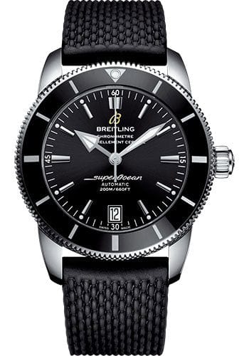 Featuring the iconic triangular-shaped hands as well as a unidirectional bezel with a polished ceramic ring, the Superocean Heritage is an elegant looking diver’s watch. Available in a variety of sizes and materials including stainless steel and 18k red gold, the Superocean Heritage B20 Automatic features a range of black or blue dials. Offered either with a matching mesh bracelet, or a “mesh-styled” rubber strap fitting a folding buckle, this Superocean Heritage is powered by the Breitling Manufacture Caliber B20, a COSC-certified chronometer based on the Tudor Caliber MT5612.