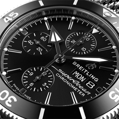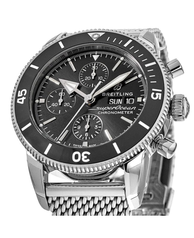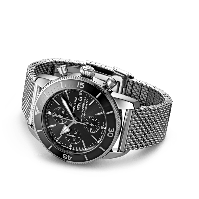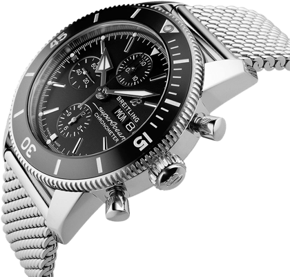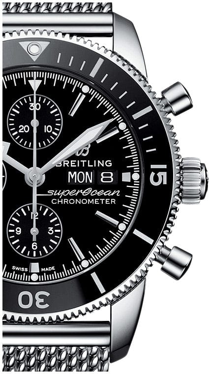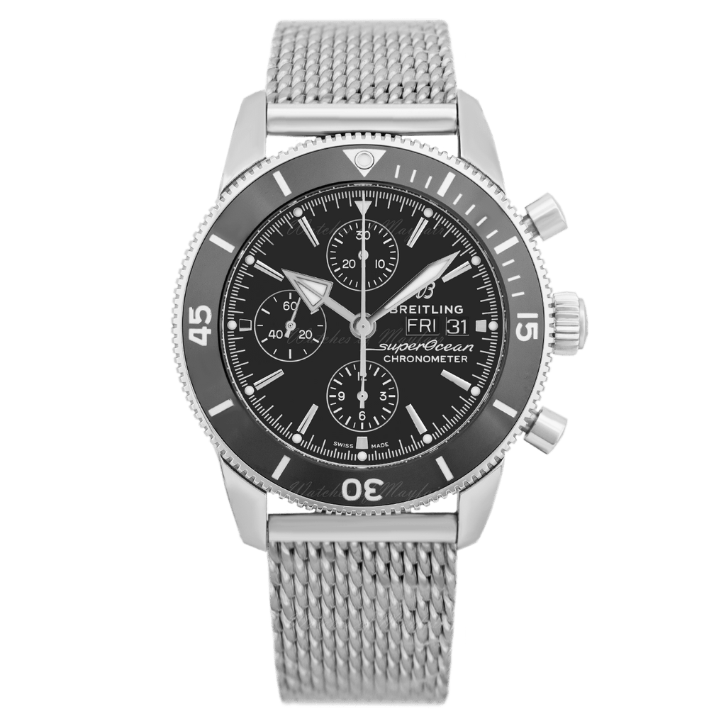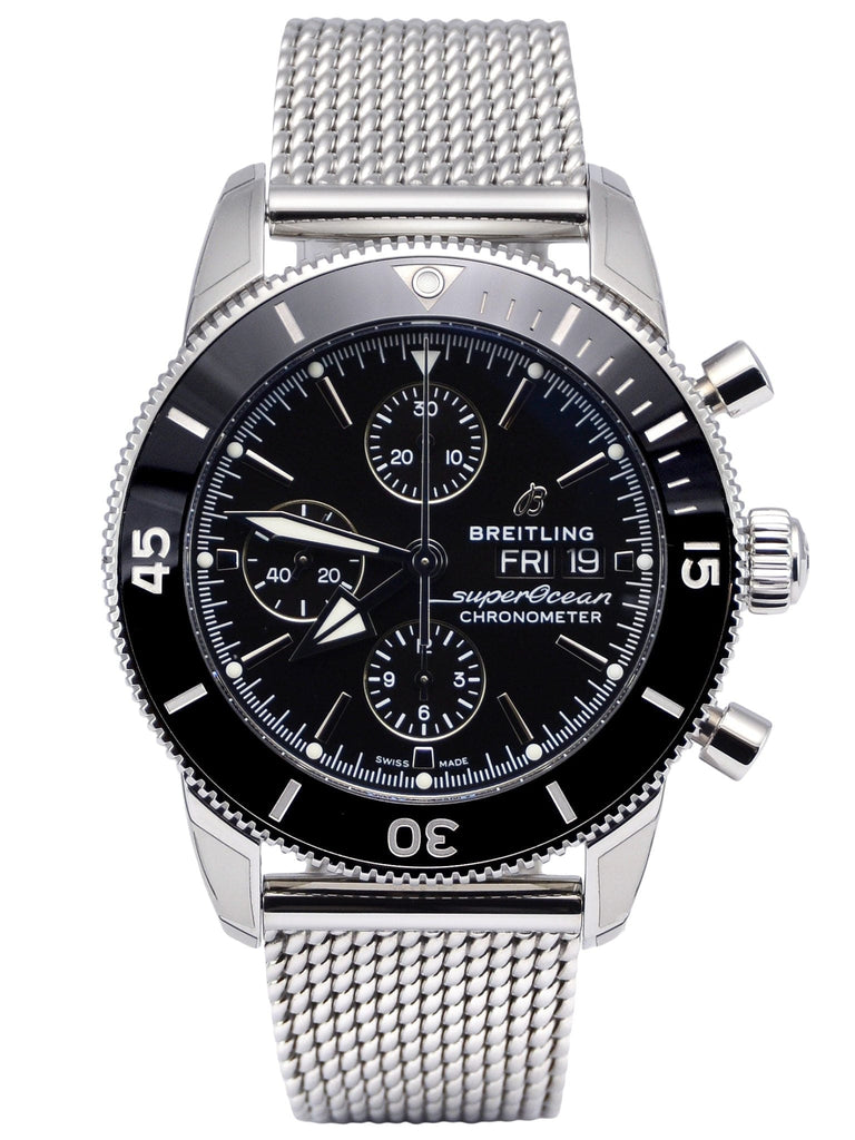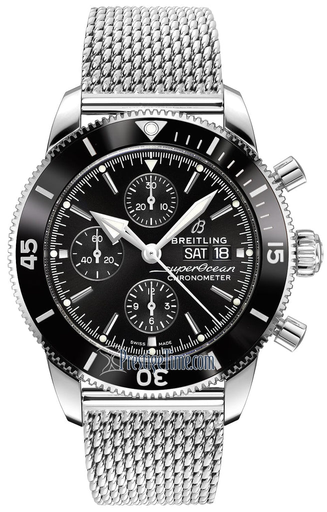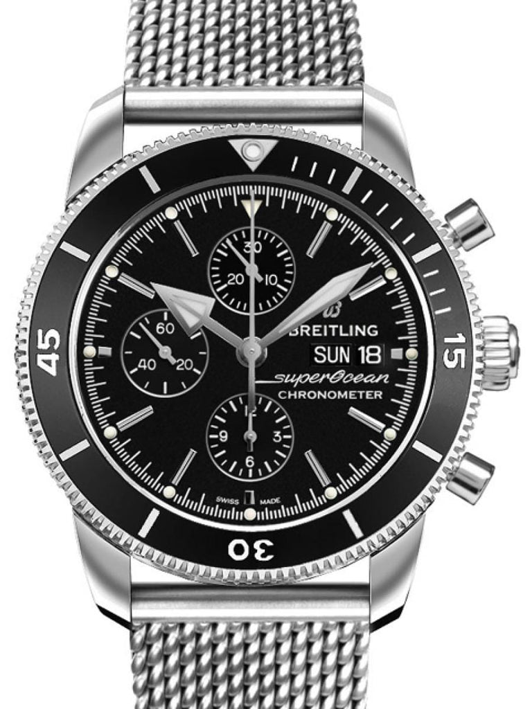 Breitling Superocean Heritage Chronograph 44 Black Dial Silver Mesh Bracelet Watch for Men - A13313121B1A1