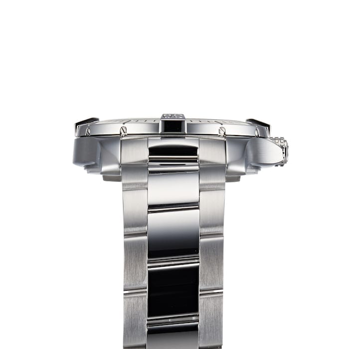 Presented on a stainless steel bracelet with a folding clasp, is a 43mm stainless steel case offering 300 metres of water resistance.