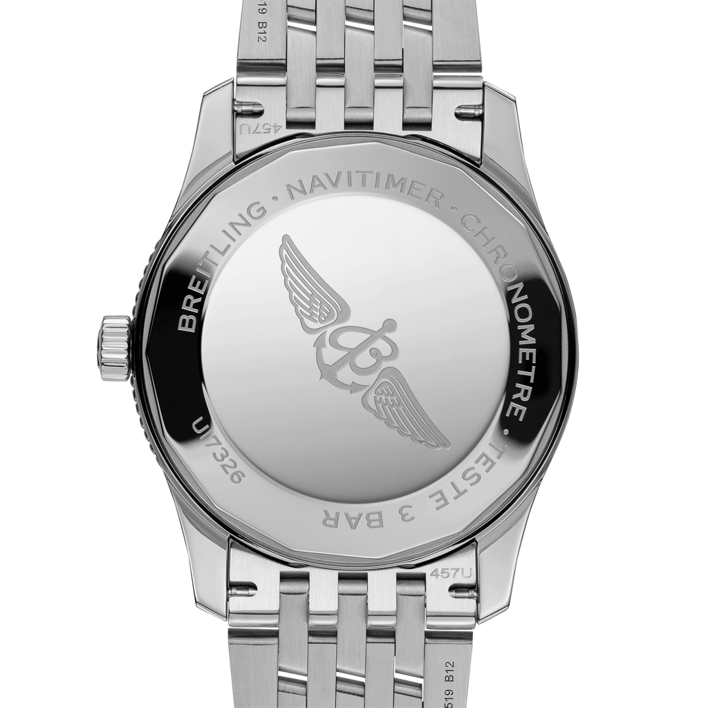 Available in a variety of materials including stainless steel and 18k red gold, the 41 mm case features a beaded bezel and a range of elegant dial colors. Offered either with a matching bracelet or alligator strap that fits both a stainless-steel pin or folding buckle, the Navitimer Automatic 41 is powered by the Breitling Caliber 17, a COSC-certified chronometer.