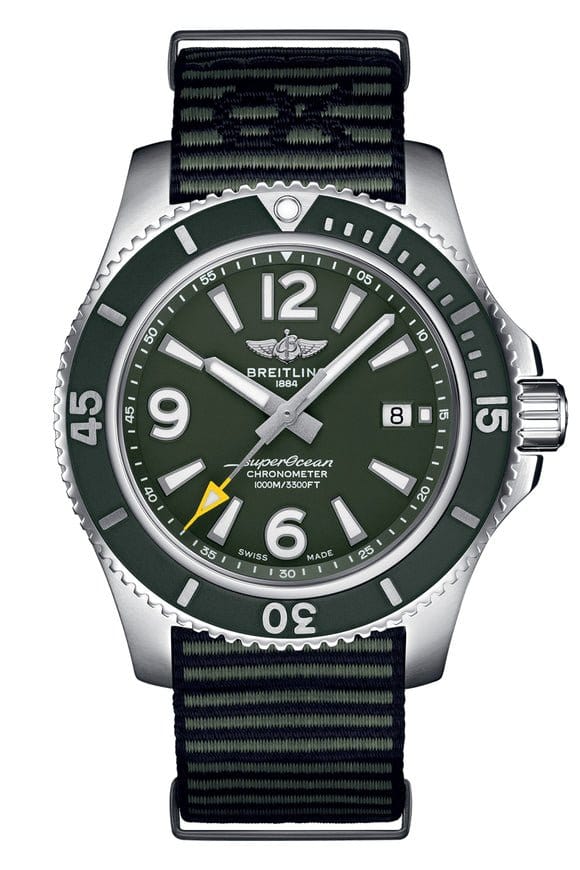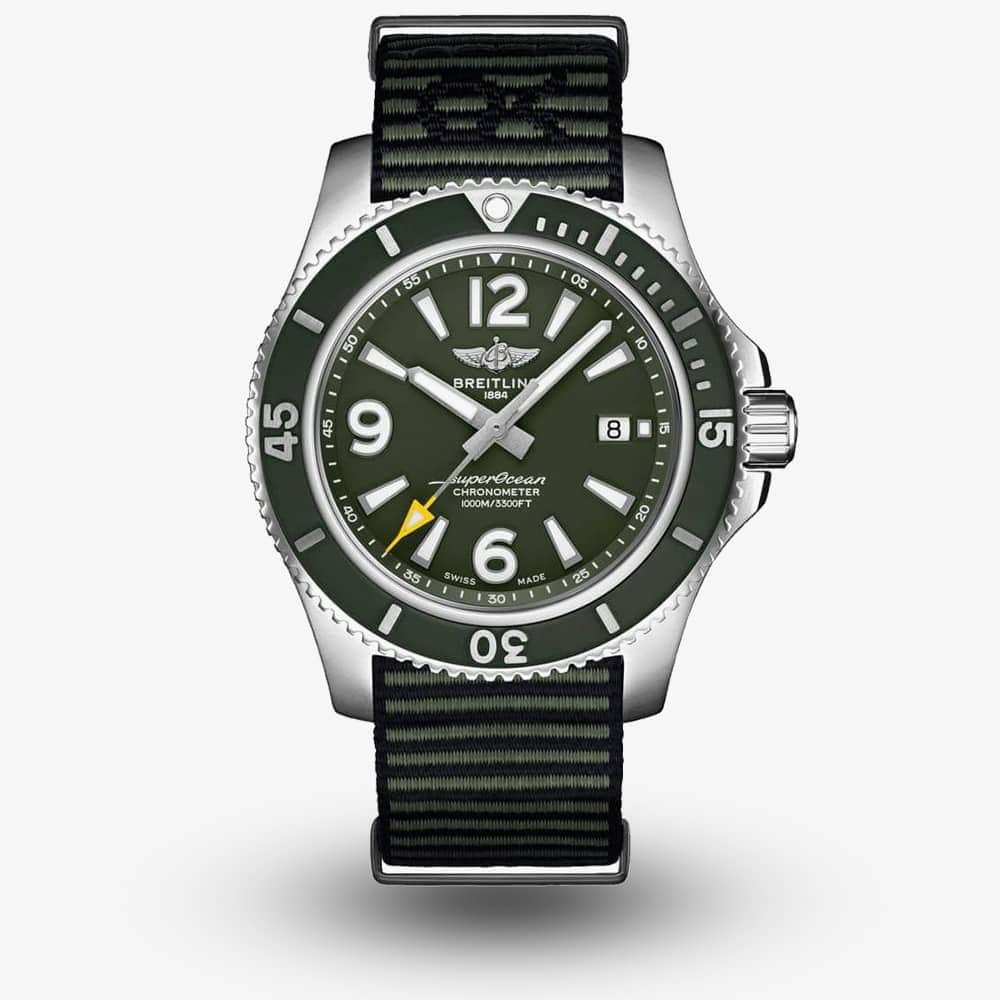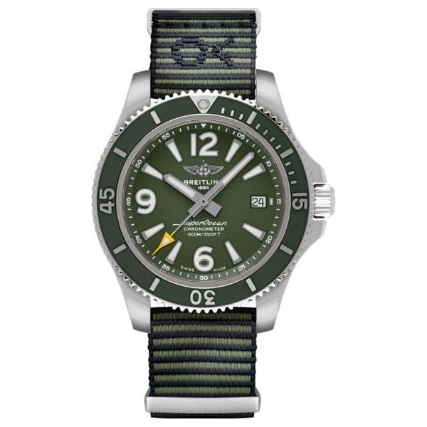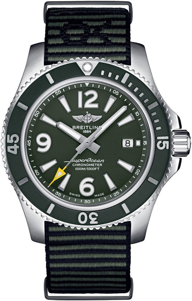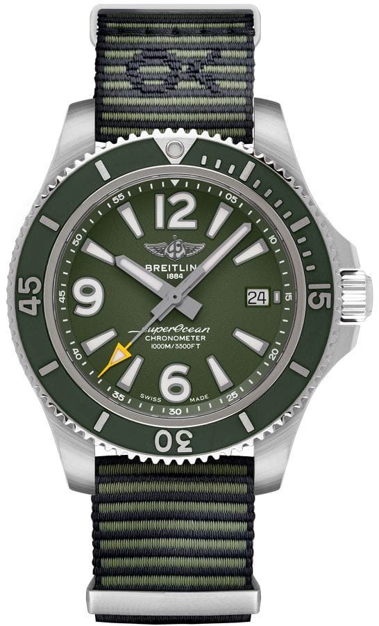 Breitling Superocean Automatic 44mm Outerknown Green Dial Green Nylon Strap Watch for Men - A17367A11L1W1