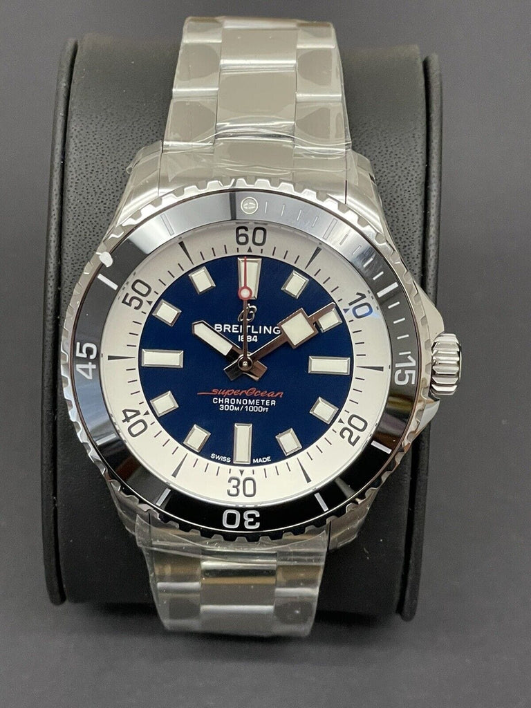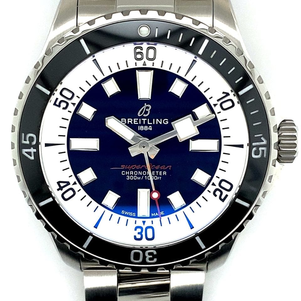 Breitling Superocean Automatic 44mm Blue Dial Silver Steel Strap Watch for Men - A17376211C1A1