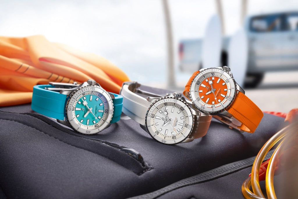 The Breitling Superocean blends performance and style, making it perfect for a variety of aquatic activities. Its roots trace back to the 1960s, when scuba diving was gaining traction. Breitling engineered the timeless Slow Motion design to maximize legibility and help divers keep track of time. It's marked by clean lines, luminous indexes, squared-off hands and a high-contrast face. Beyond its practicality, it's also incredibly stylish. This modern version of the Superocean features a ceramic-laid bezel and bright dials with luminescent Super-LumiNova® hands and markers. It's also water resistant up to 300 m (1000 ft) and fortified against shock, sand, and saltwater.