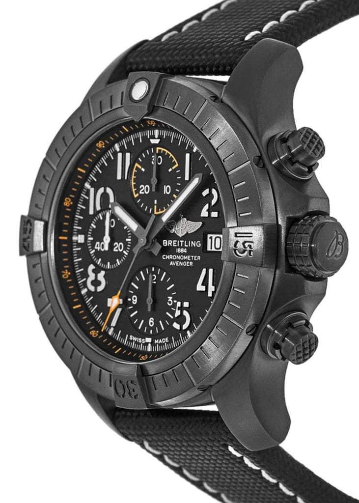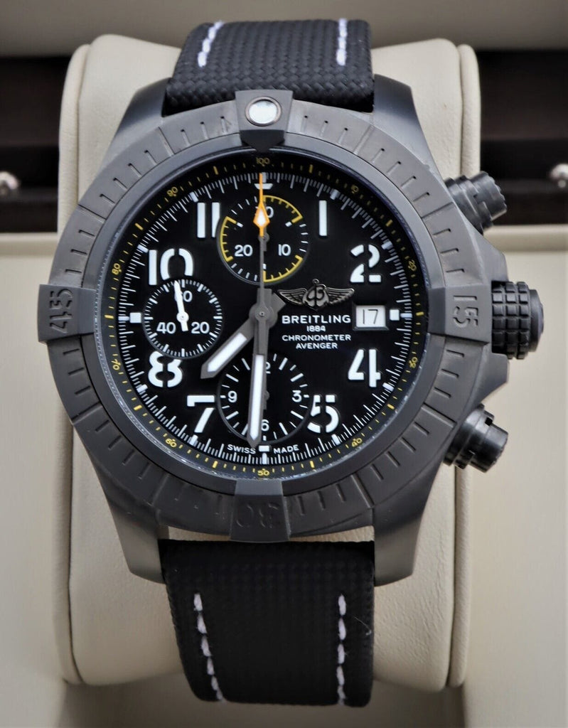Breitling Avenger Chronograph 45mm Night Mission Black Dial Black Nylon Strap Watch for Men - V13317101B1X1