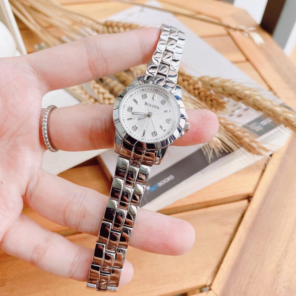 Bulova Classic Diamonds Silver Dial Silver Steel Strap Watch for Women - 96P121