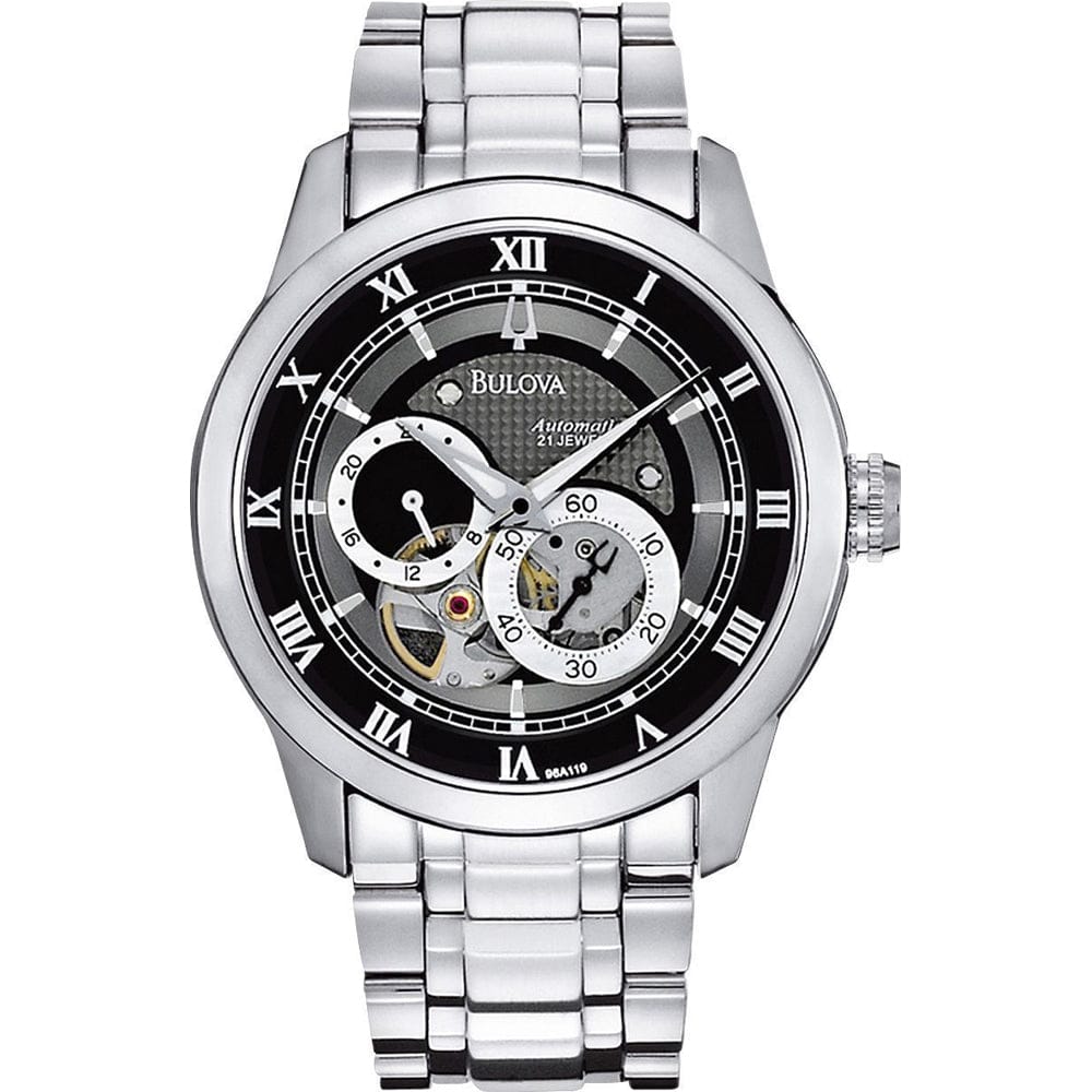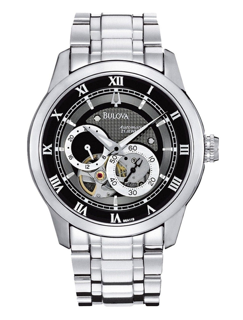 Bulova BVA Dual Aperture Black Dial Silver Steel Strap Watch for Men - 96A119