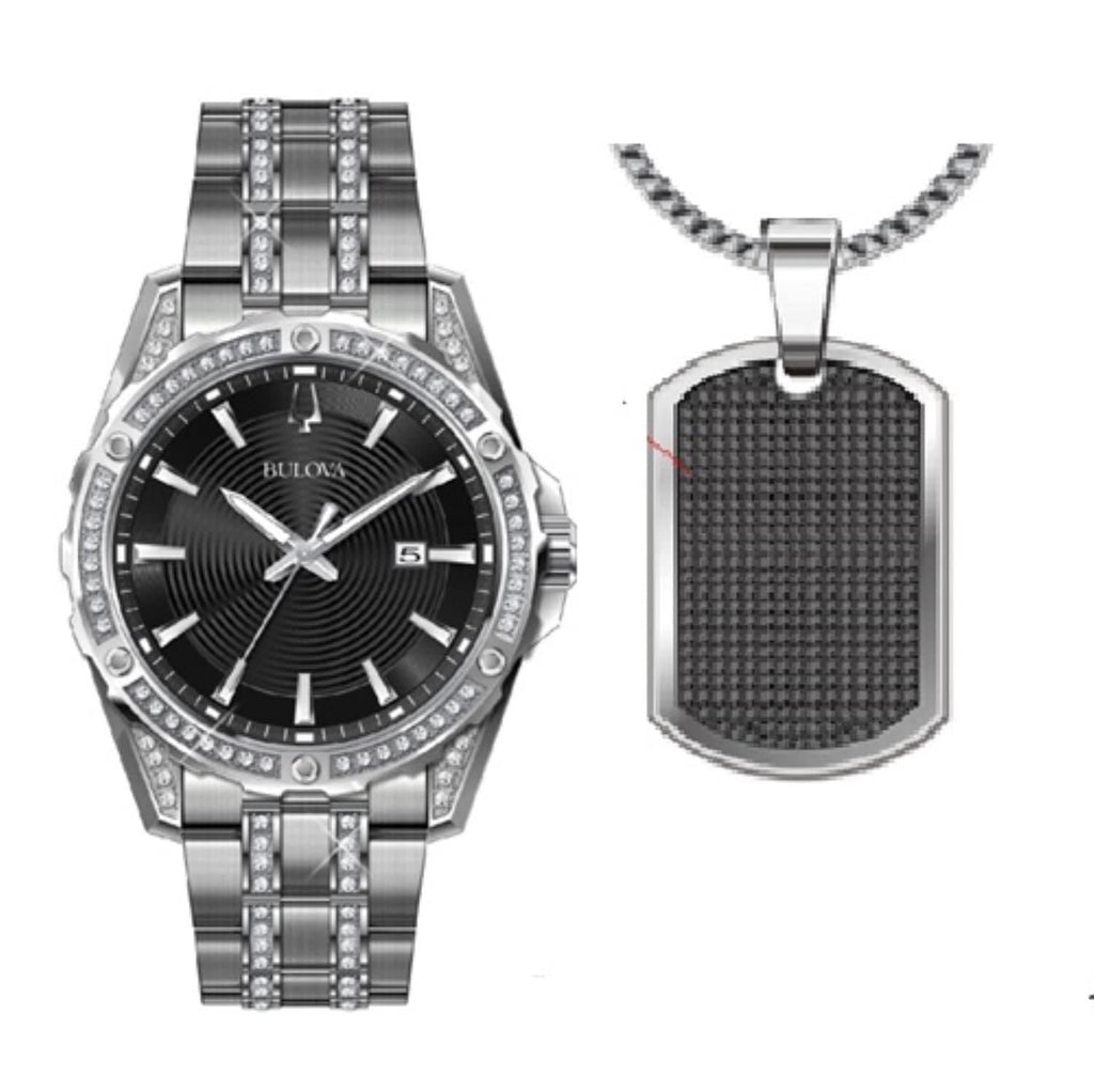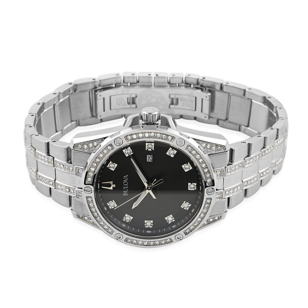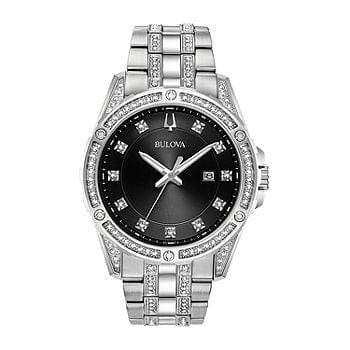 Bulova Crystal Collection Black Dial Silver Steel Strap Watch for Men - 96K104