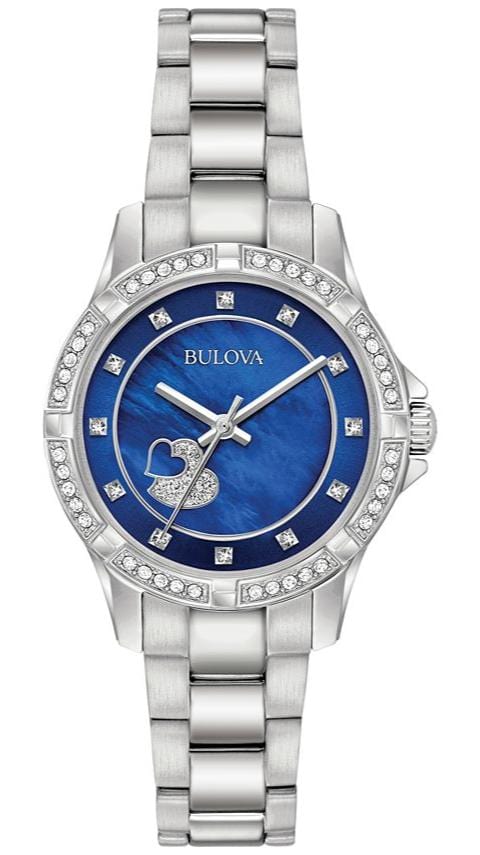 Bulova Crystal Collection Blue Mother of Pearl Dial Silver Steel Strap Watch for Women - 96L238