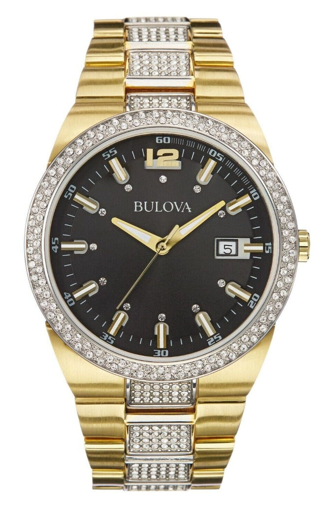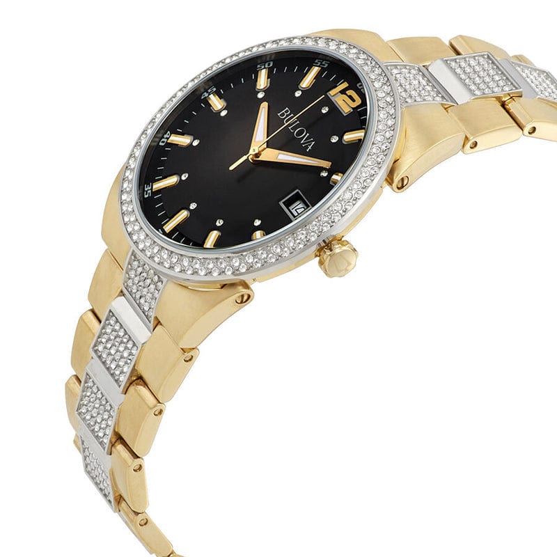 Bulova Crystal Black Dial Two Tone Steel Strap Watch for Men - 98B235