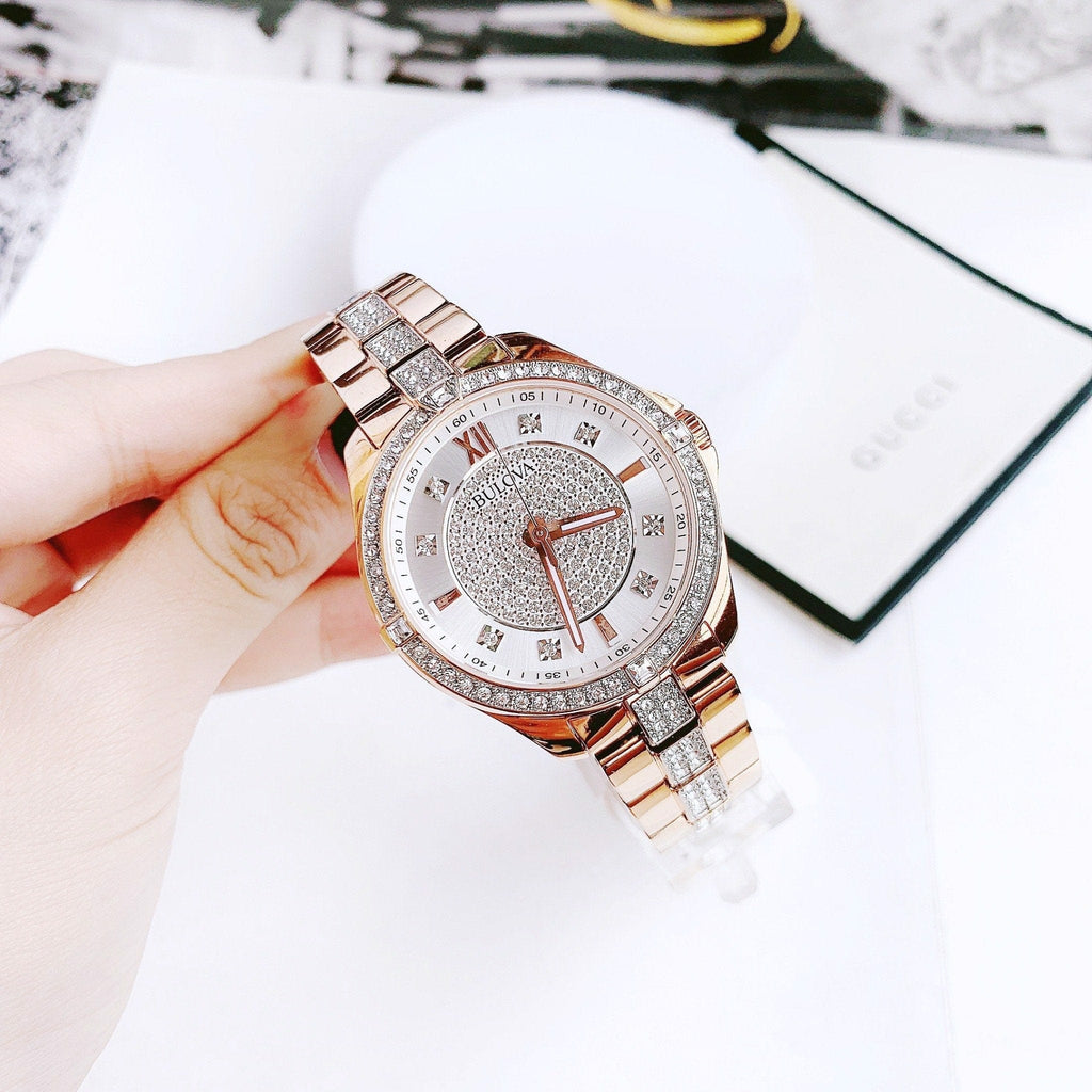 Bulova 98L229 Case 35mm for girls who love big sizes, whose wrists are not too small, they are very beautiful on their hands. Attach a lot of sparkling swarovski stones