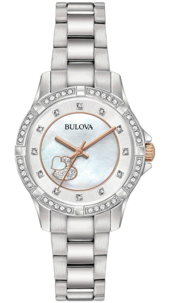 Bulova Crystal Collection Mother of Pearl Dial Silver Steel Strap Watch for Women - 98L232