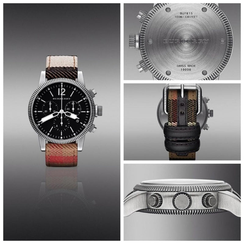 Burberry Utilitarian Chronograph Black Dial Tri Tone Leather Strap Watch for Men - BU7815