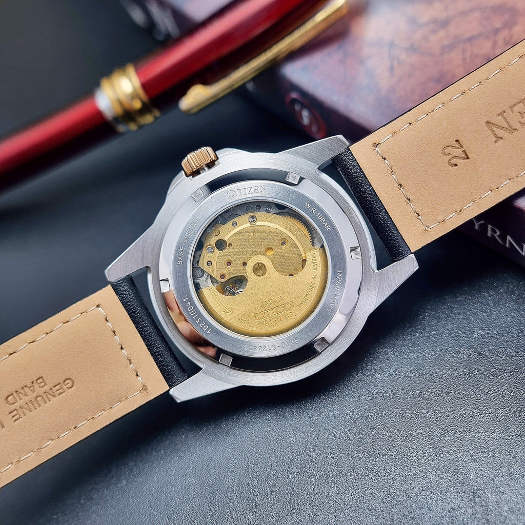 Citizen Mechanical Automatic Black Dial Black Leather Strap Watch for Men - NJ0176-10E
