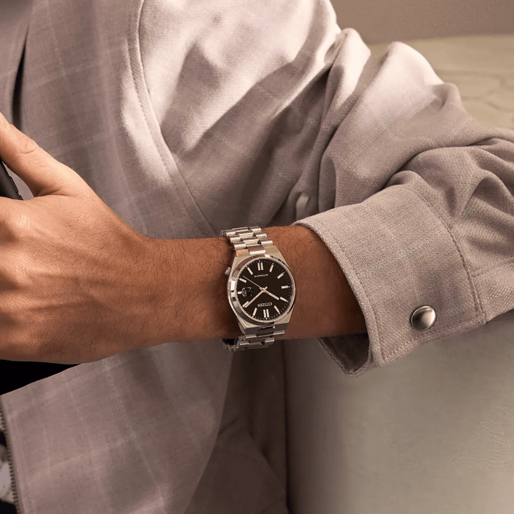 The Citizen Tsuoysa Automatic Watch is an amazing timepiece that will captivate you with its features and charm. From the moment you slip it on your wrist, you will know that you are wearing something special. With its sophisticated sapphire crystal face marked with deeply etched numerals, this watch exudes a subtle luxury style. The integrated bracelet is made of stainless steel and holds the case of size 40mm in place.