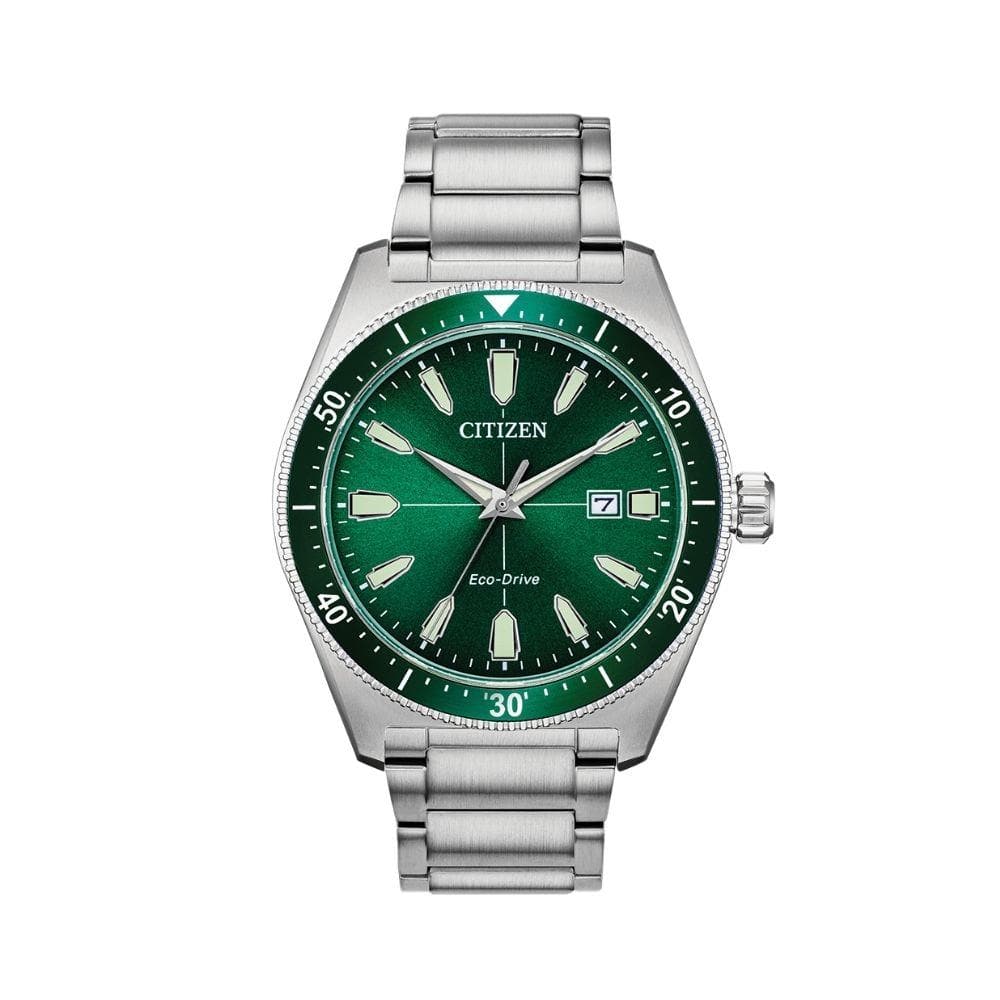 Citizen Eco Drive Vintage Green Dial Silver Steel Strap Watch For Men - AW1598-70X