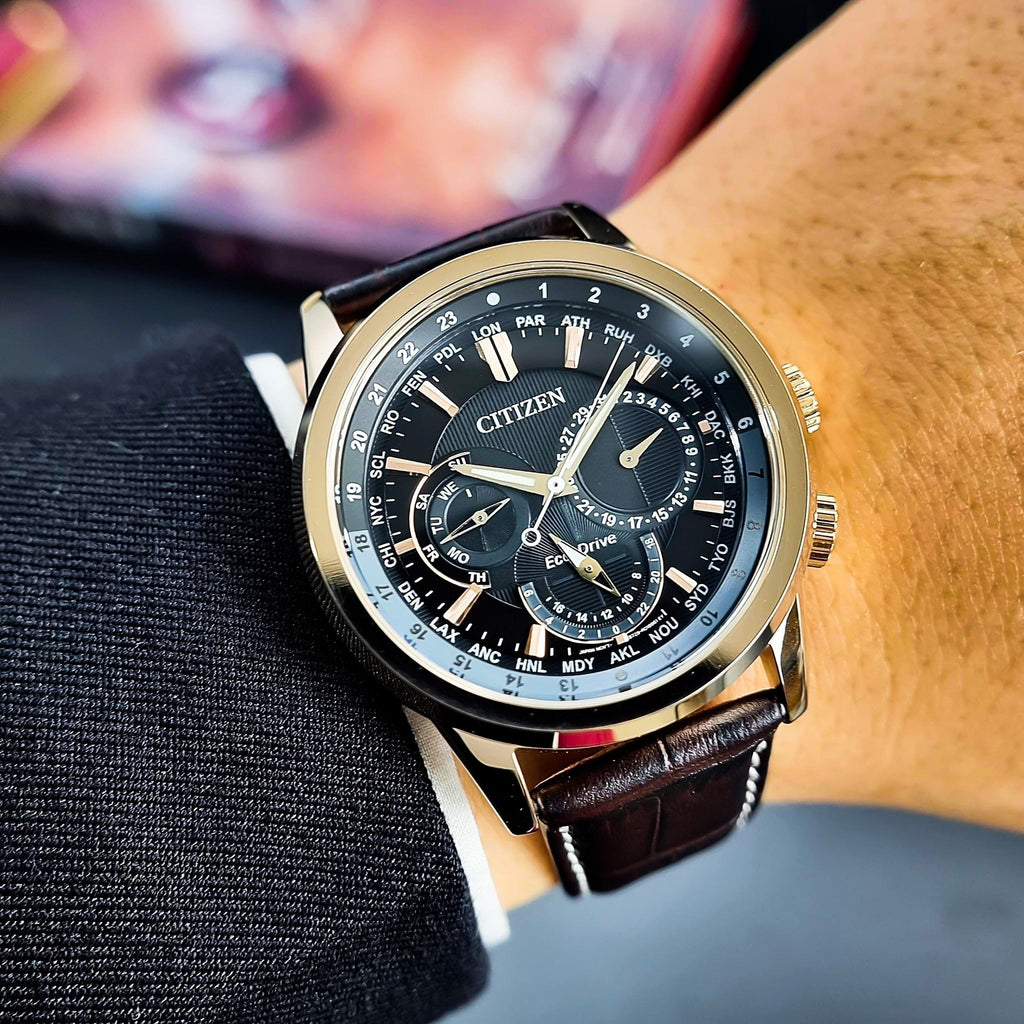 Timeless, classy and sophisticated, the CITIZENĀ® Calendrier is a pure combination of all three that reflects elegance in gold! But within the sharp looks is nested a load of useful functions and high-end technology that offer a stellar combination of style with performance. If chronographs bored you, then the multifunction Calendrier is going to rekindle your love for multi-dial layouts.