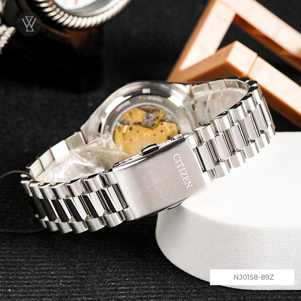 Citizen NJ0158-89Z Metal Band Men Watch. The case is made out of silver stainless steel with a silver bezel, which stands for the high quality of the item, it has a green color dial. This model has got 50 meters of water resistance. it can be worn in scenarios where it is likely to be splashed but not immersed in water and will be fine in rain. The watch is shipped with an original box and a guarantee from the manufacturer.