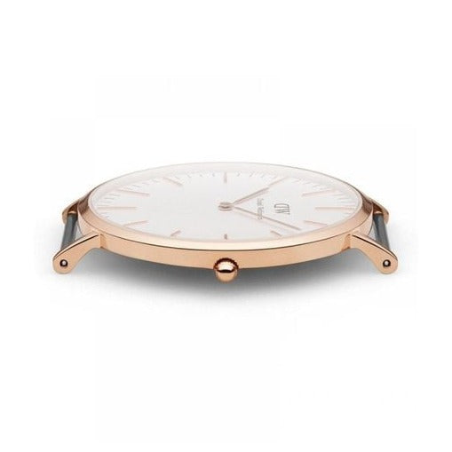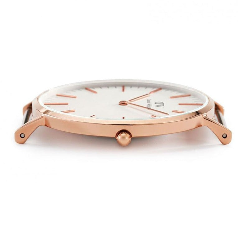 This watch with a rose gold numeral index display, mineral glass, rose gold/polished silver buckle, and rose gold setting crown uses a Quartz Miyota 1L22 movement and is 30 m water resistant. & Daniel Wellington 0101DW-GD DW00100001 Classic Leather Strap Oxford Women's Watch - Navy Red [40 mm], analog watch designed casually by combining stainless steel case & canvas strap and white dial. This watch with a numeral index display uses a Quartz Movement and is water resistant up to 30 m.