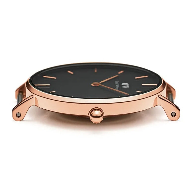 Daniel Wellington Watch Petite Dover Black 28mm DW00100314. The Daniel Wellington watches Petite collection is made by stainless steel, and making the mesh bracelet involves cutting a special type of chain mail to the desired length and width to attain the perfect balance between density and thread count. The resulting Petite is our sleekest timepiece to date, and truly reflects the minimalistic design approach of Daniel Wellington.