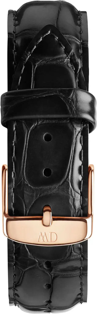 Daniel Wellington men's watch from the Classic Black Reading collection, quartz movement, rosé steel case, black leather strap, black dial, WR 30m. Reference: DW00100129