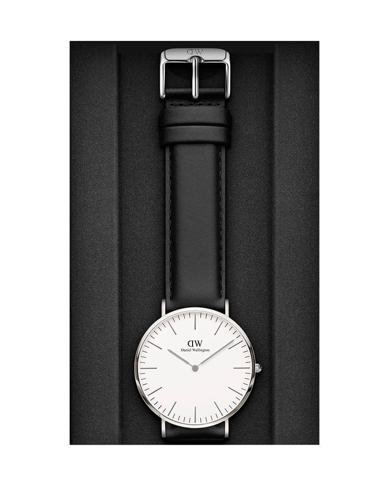 Experience timeless elegance with the Daniel Wellington Classic Sheffield Watch. Featuring a sleek black leather strap and a crisp white dial, this watch exudes sophistication. Perfect for any occasion, this watch is a must-have addition to any wardrobe. Elevate your style with the Classic Sheffield Watch.