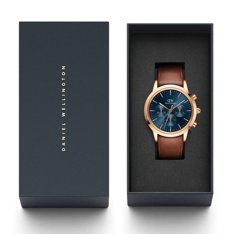 Daniel Wellington Iconic Chronograph Blue Dial Brown Leather Strap Watch For Men - DW00100639