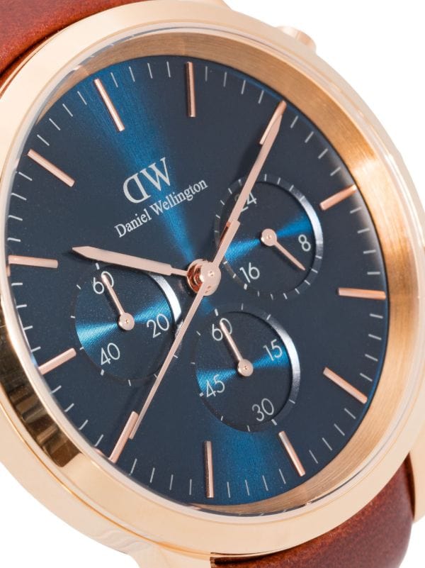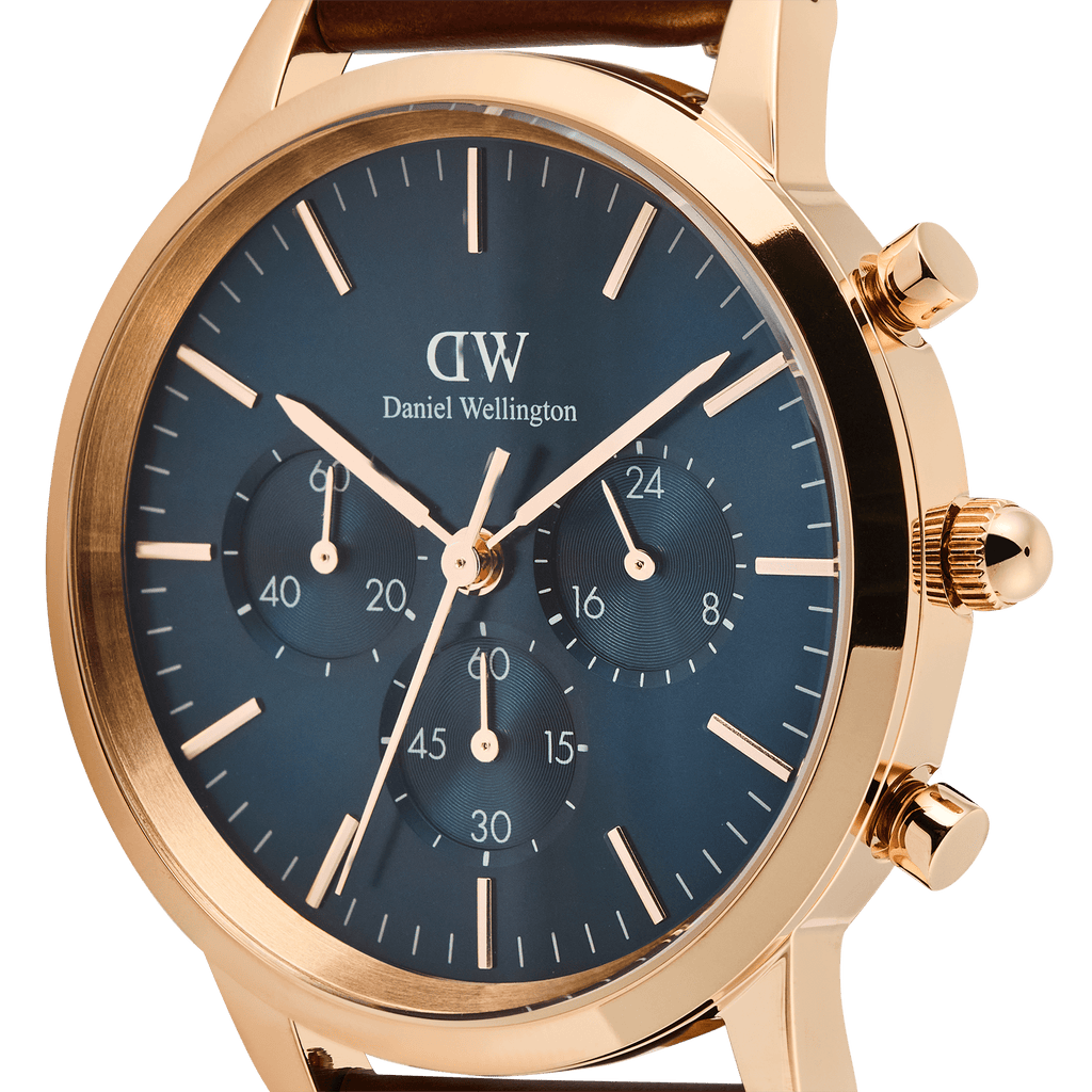 The Daniel Wellington DW00100639 St Mawes Iconic Chronograph in Arctic Blue Sunray with a brown leather band equips you for a productive day with style and functionality. Featuring the classic chronograph aesthetic, it seamlessly blends into our minimalist blue dial design with a radiant sunray finish. The watch includes three sub-dials for versatile stopwatch capabilities, ensuring impeccable accuracy. And to top it off, take note of the impressive watchband.