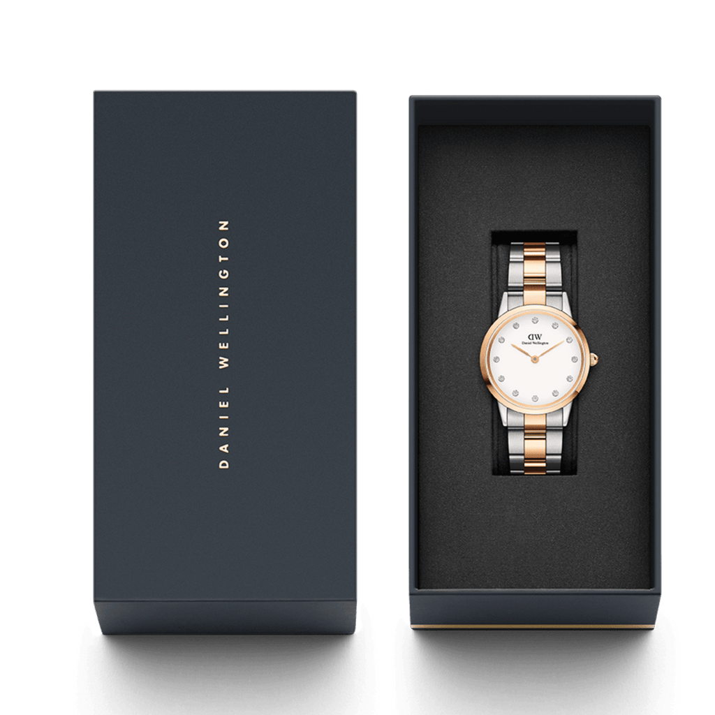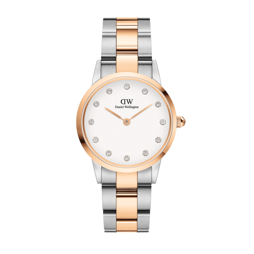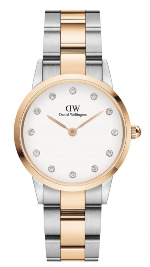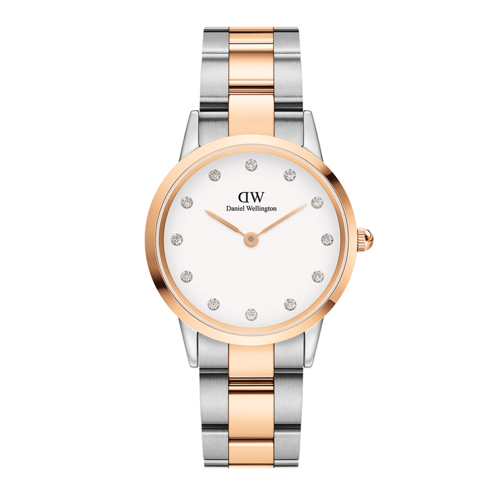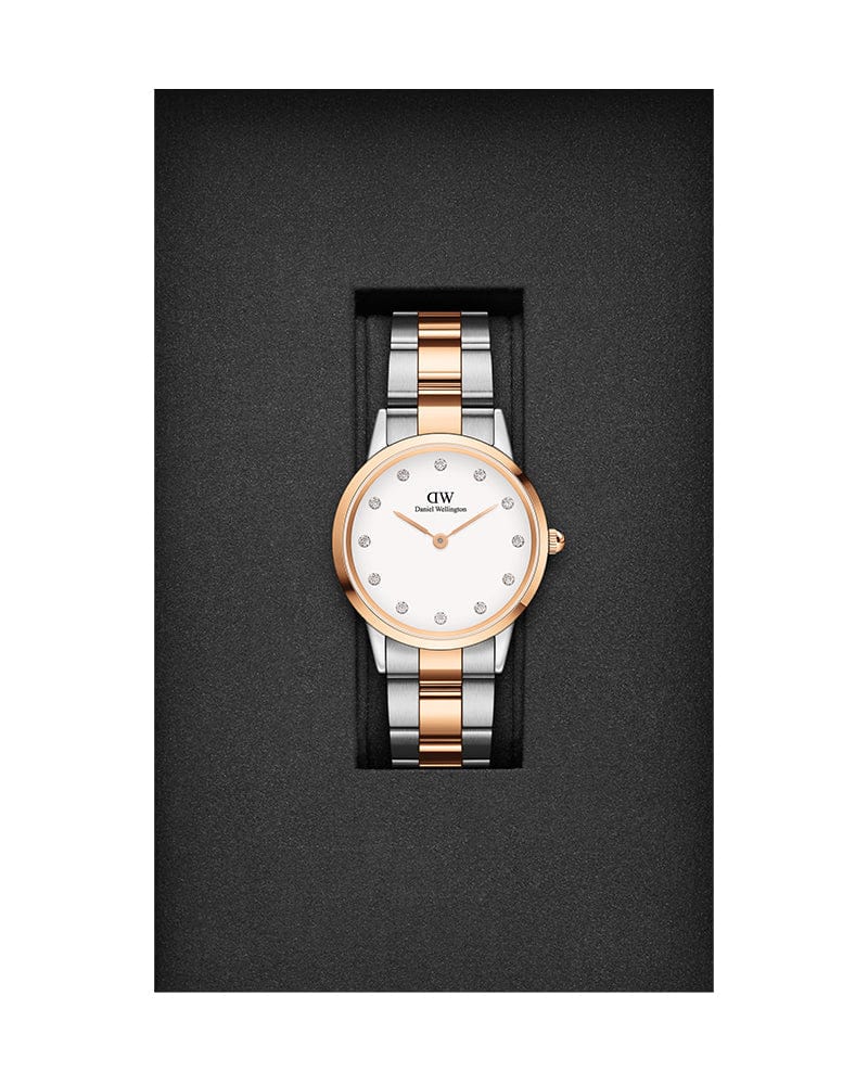 Introducing the Daniel Wellington Iconic Link watch For Women. Experience the perfect blend of style and functionality with its two-tone steel strap and elegant white dial. Never miss a beat with this timeless accessory that adds a touch of sophistication to any outfit.