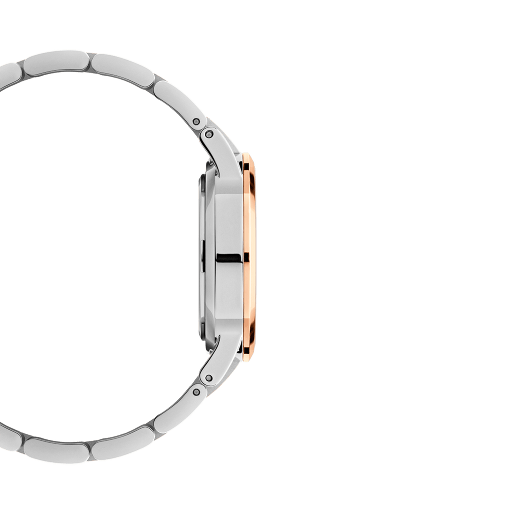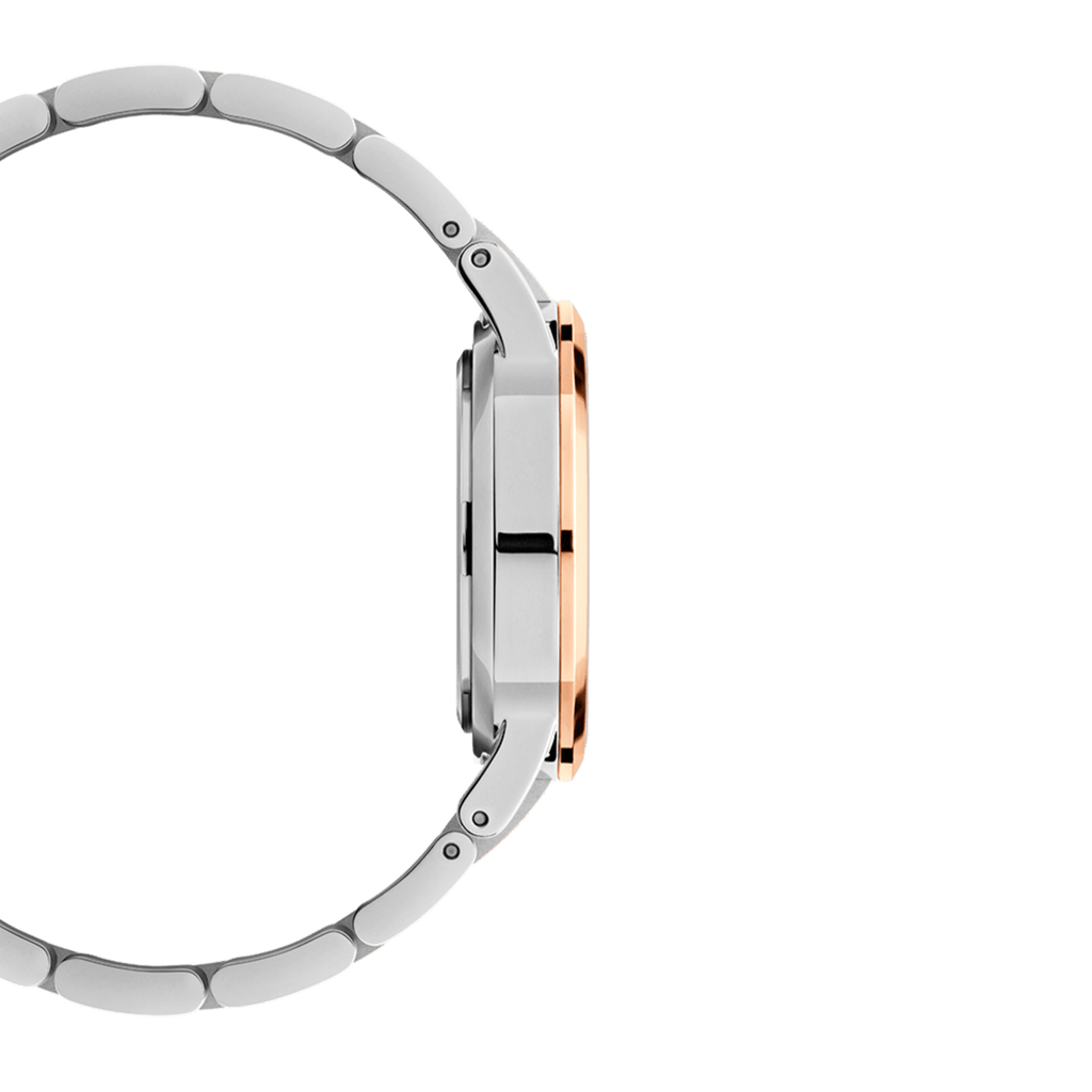 In this version, water resistance is limited. You should definitely not submerge the watch on purpose, but accidental contact with a small amount of moisture should not be harmful. The rose gold used to finish the case is not only a beautiful trend in recent years. It is above all a perfect meeting of contemporary fashion with timeless classics. The subdued silver color of the case determines the universality of the watch. The stainless steel used to make the case is characterized by high durability and scratch resistance.