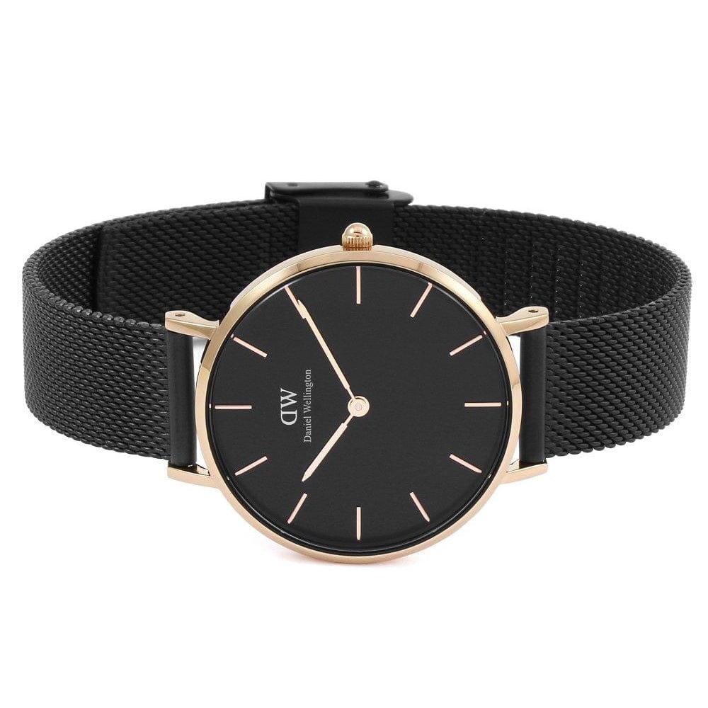 Daniel Wellington Petite Ashfield Black Dial Black Mesh Bracelet Watch Watch For Women - DW00100201