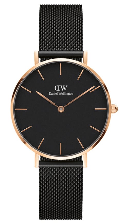 Introducing the Daniel Wellington Petite Ashfield Watch for women - a sleek and stylish timepiece that exudes elegance. With a black dial and matching black mesh bracelet, this watch is perfect for any occasion. Its petite size and minimalist design add a touch of sophistication to any outfit. Elevate your style with DW00100201!