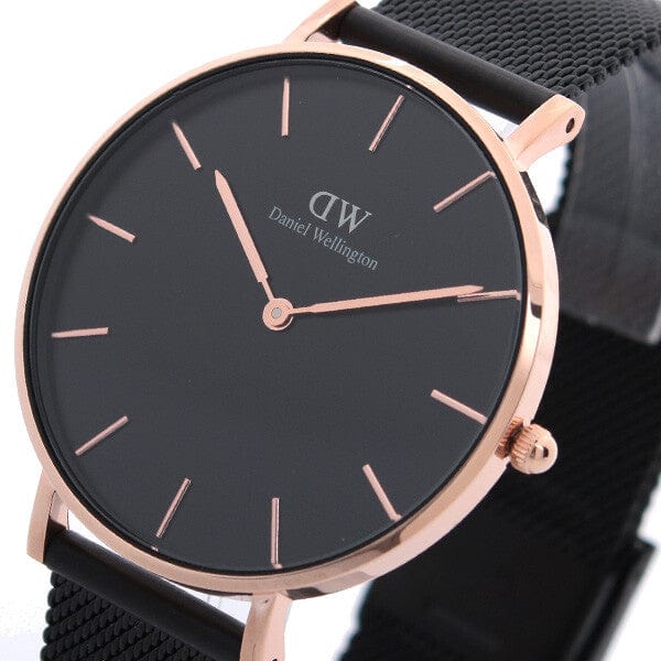 Daniel Wellington Petite Ashfield Black Dial Black Mesh Strap Watch for Women - DW00100307