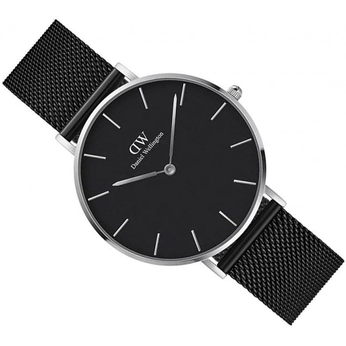 Daniel Wellington Petite Ashfield Black Dial Black Mesh Strap Watch For Women - DW00100308