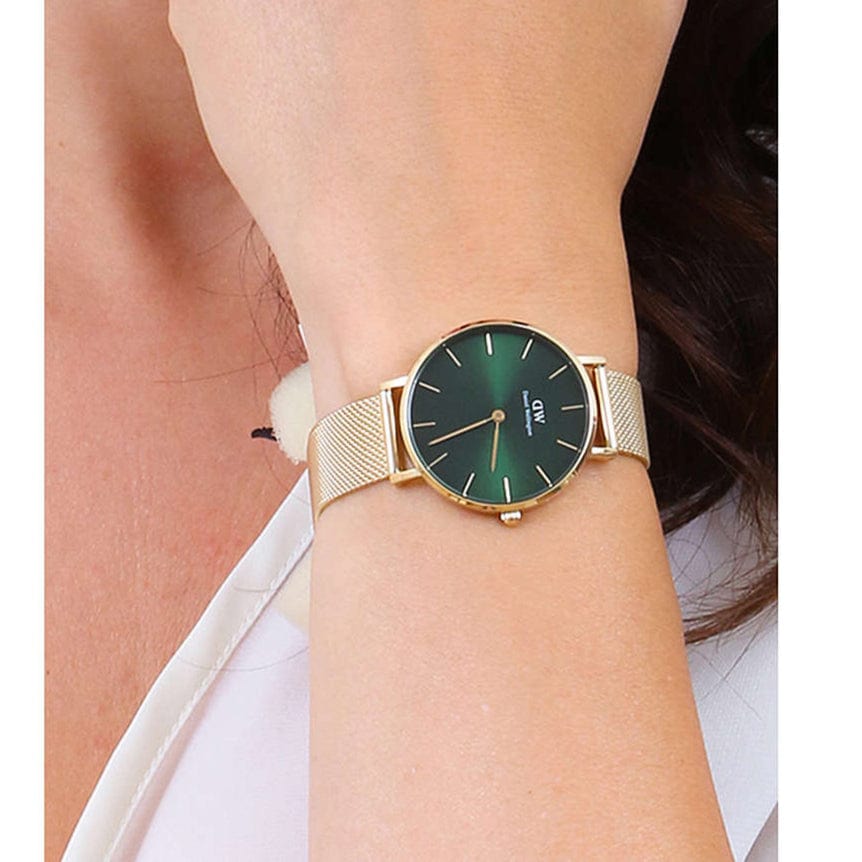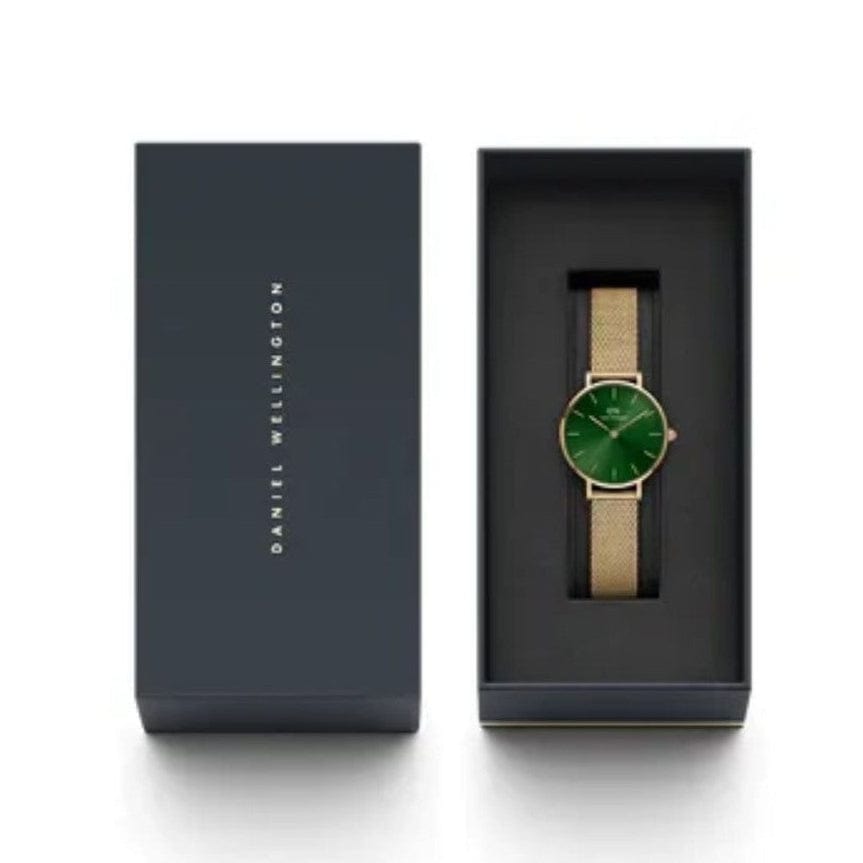 Daniel Wellington Petite Emerald Green Dial Gold Mesh Strap Watch For Women - DW00100481