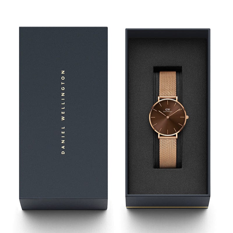 Daniel Wellington Petite Melrose Brown Dial Rose Gold Mesh Strap Watch For Women - DW00100477