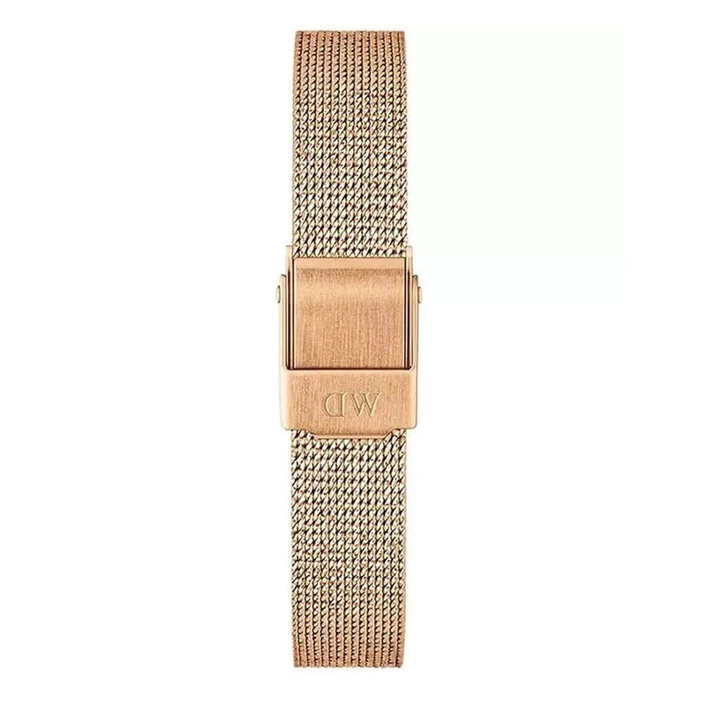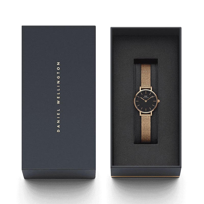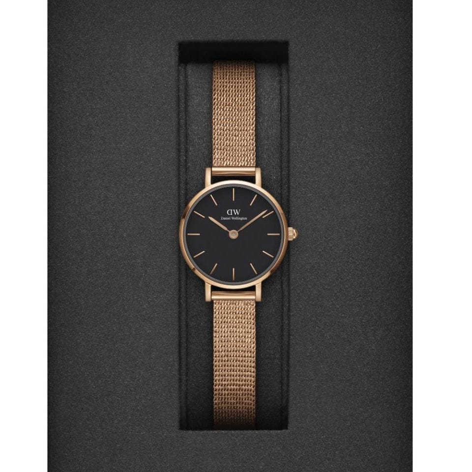 Daniel Wellington Petite Pressed Melrose Black Dial Rose Gold Mesh Strap Watch For Women - DW00100440