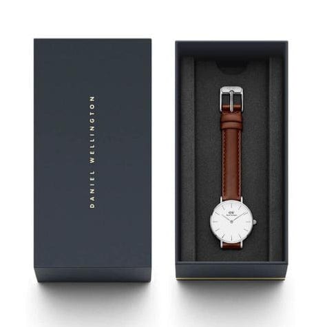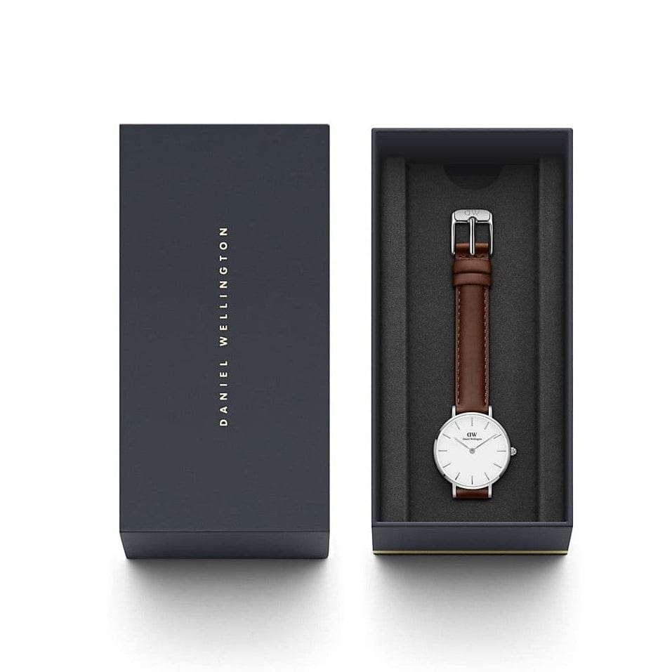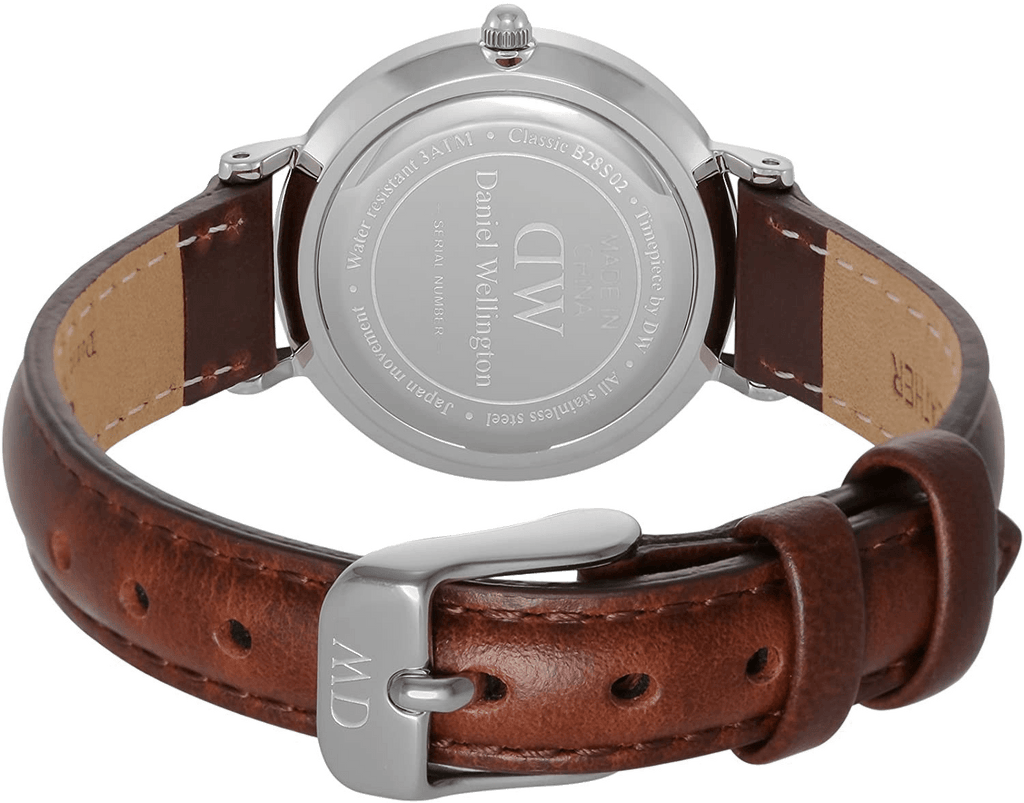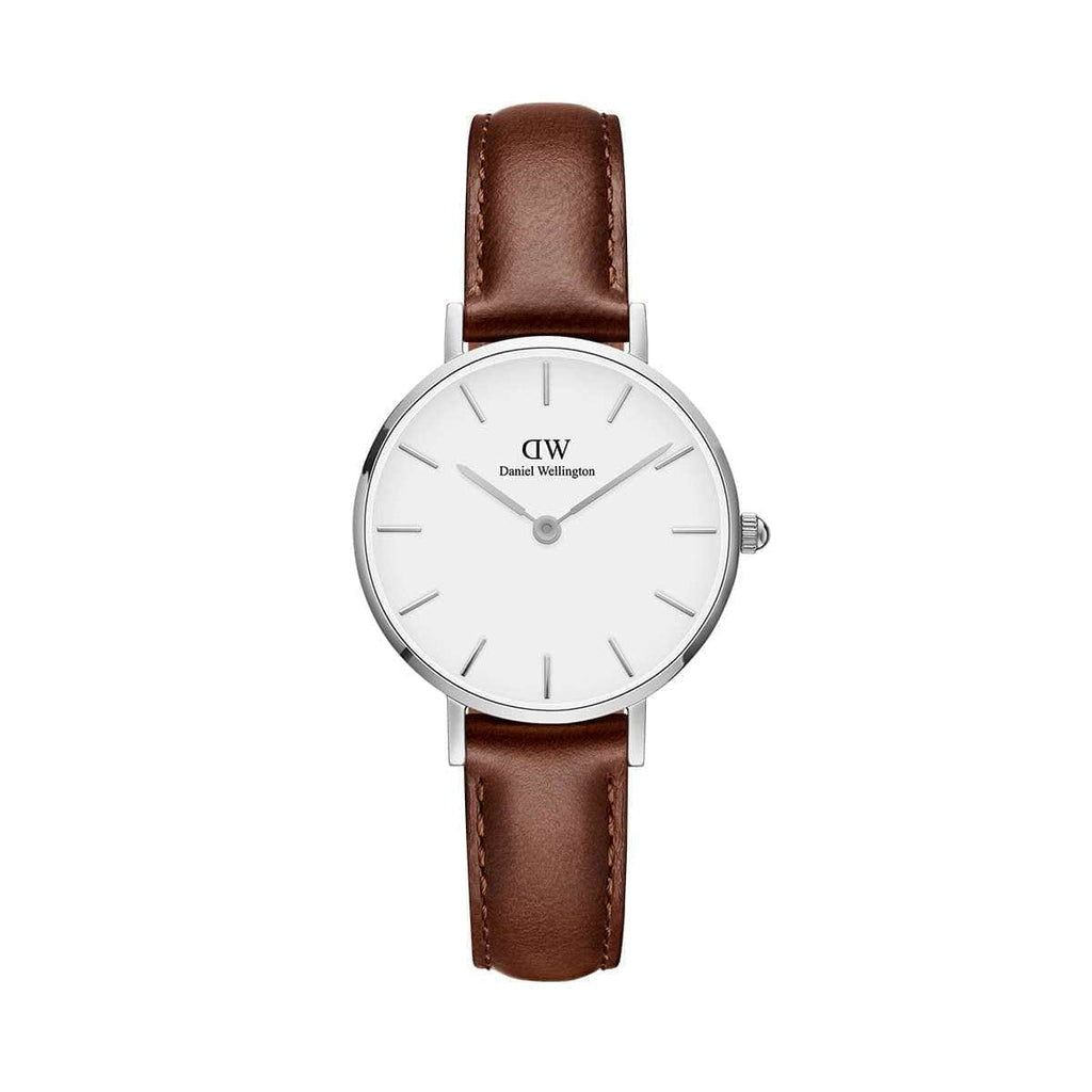 Daniel Wellington Petite White Dial Brown Leather Strap Watch For Women - DW00100243