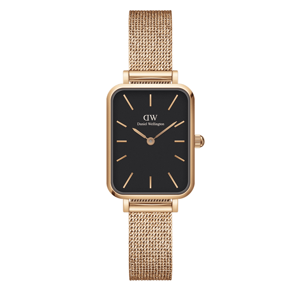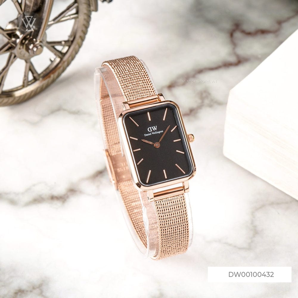 Daniel Wellington Quadro Melrose Black Dial Rose Gold Mesh Bracelet Watch For Women - DW00100432