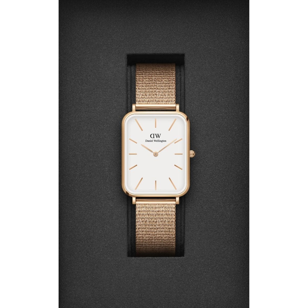 Daniel Wellington Quadro Pressed Melrose White Dial Rose Gold Mesh Strap Watch For Women - DW00100465