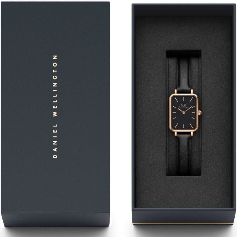 Daniel Wellington Quadro Sheffield Black Dial Black Leather Strap Watch For Women - DW00100435