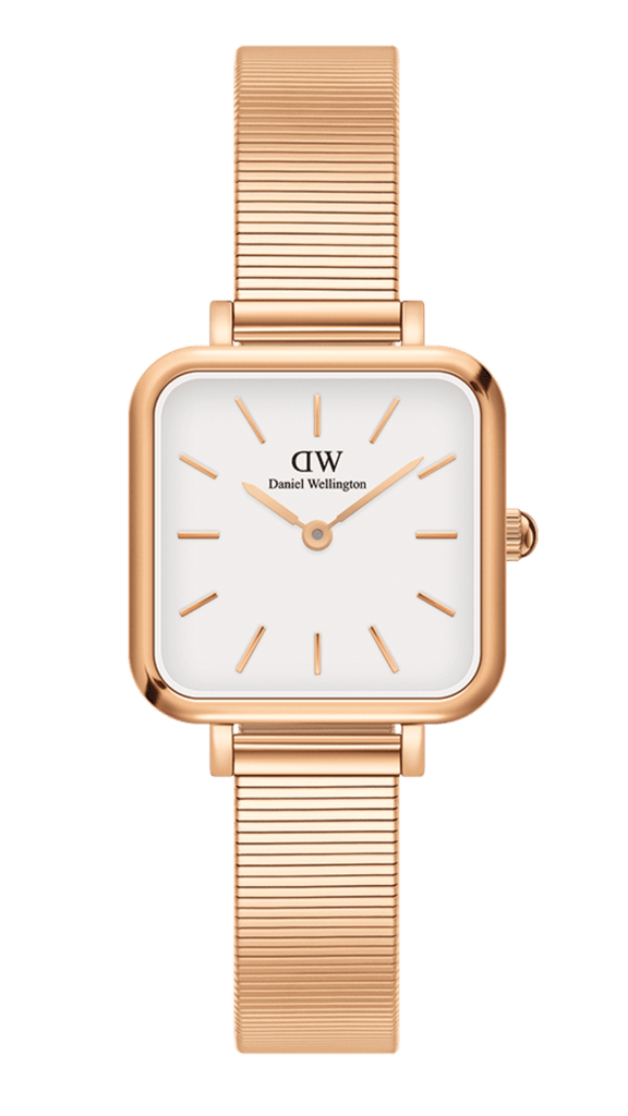 The Daniel Wellington watch from the Quadro Studio collection features a small and delicate white dial, complemented by the elegant Piano strap. Crafted from polished stainless steel in a refined rose gold plating. A retro style with a timeless charm.