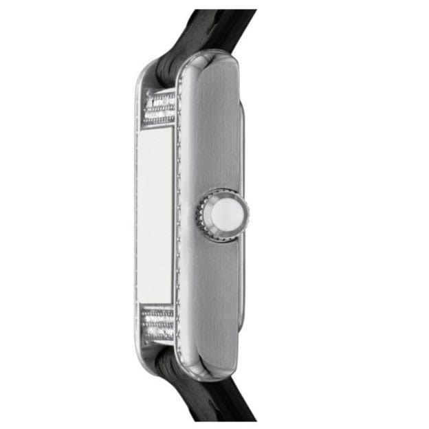 A supple black leather strap adds a classic contrast, ensuring comfort and versatility for everyday wear. With a quartz two-hand movement and mineral crystal glass, this watch balances precise timekeeping with enduring design. Water-resistant up to 50 meters and featuring a secure single prong strap buckle, it brings together functionality and elevated style in a subtly luxurious form.