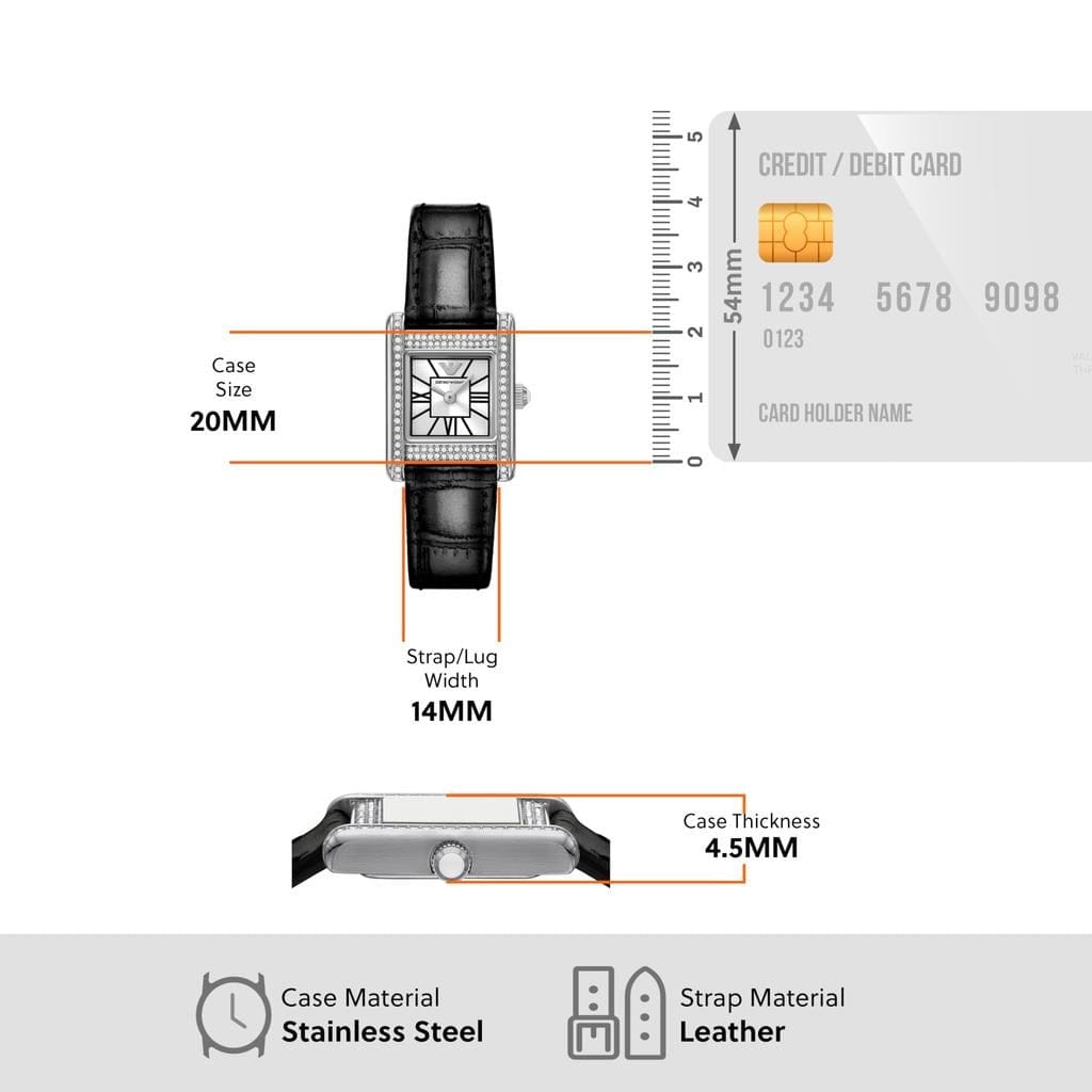 Emporio Armani Classic Crystals Silver Dial Black Leather Strap Watch for Women - AR11660