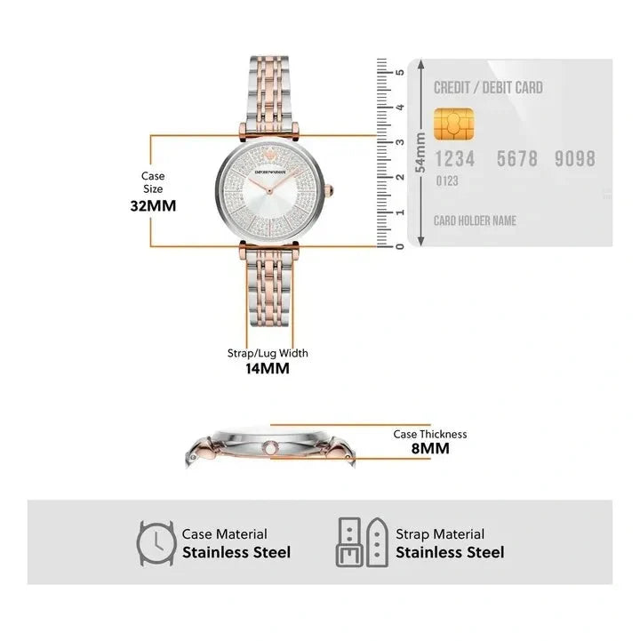 Emporio Armani Gianni T Bar Silver Dial Two Tone Steel Strap Watch for Women - AR11537
